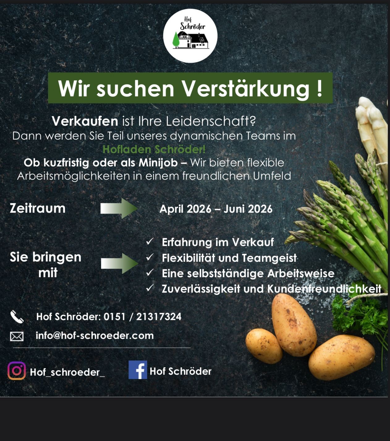 Wir suchen Verstärkung für unseren Hofladen Schröder!